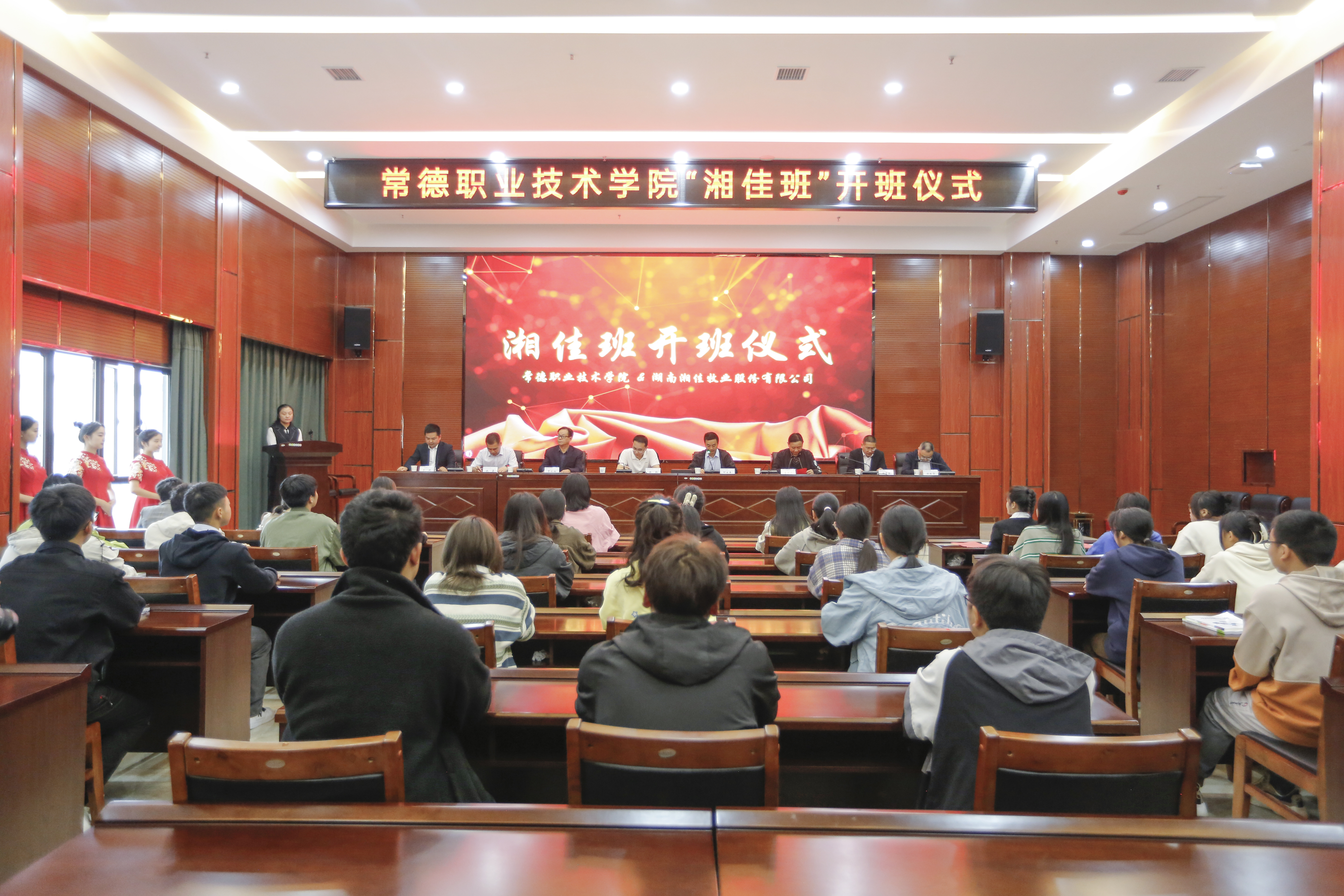10月10日,湘佳股份與常德職業(yè)技術(shù)學(xué)院聯(lián)合開辦的首屆“湘佳班”開班儀式在常德職業(yè)技術(shù)學(xué)院會議廳舉行。常德職業(yè)技術(shù)學(xué)院黨委副書記徐翔、湘佳股份副總裁兼董事會秘書何業(yè)春、總裁助理兼文化部部長賀欣初出席開班儀式,學(xué)院相關(guān)領(lǐng)導(dǎo)、專業(yè)教師、湘佳班全體學(xué)生以及湘佳股份導(dǎo)師代表參加開班儀式。